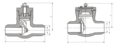 H64Y 型 1500(Lb)~2500(Lb) 電站止回閥適用于 Class1500~2500Lb,工作溫度 -29~570℃ 的石油、化工、火力電站等各種工況的管路上。