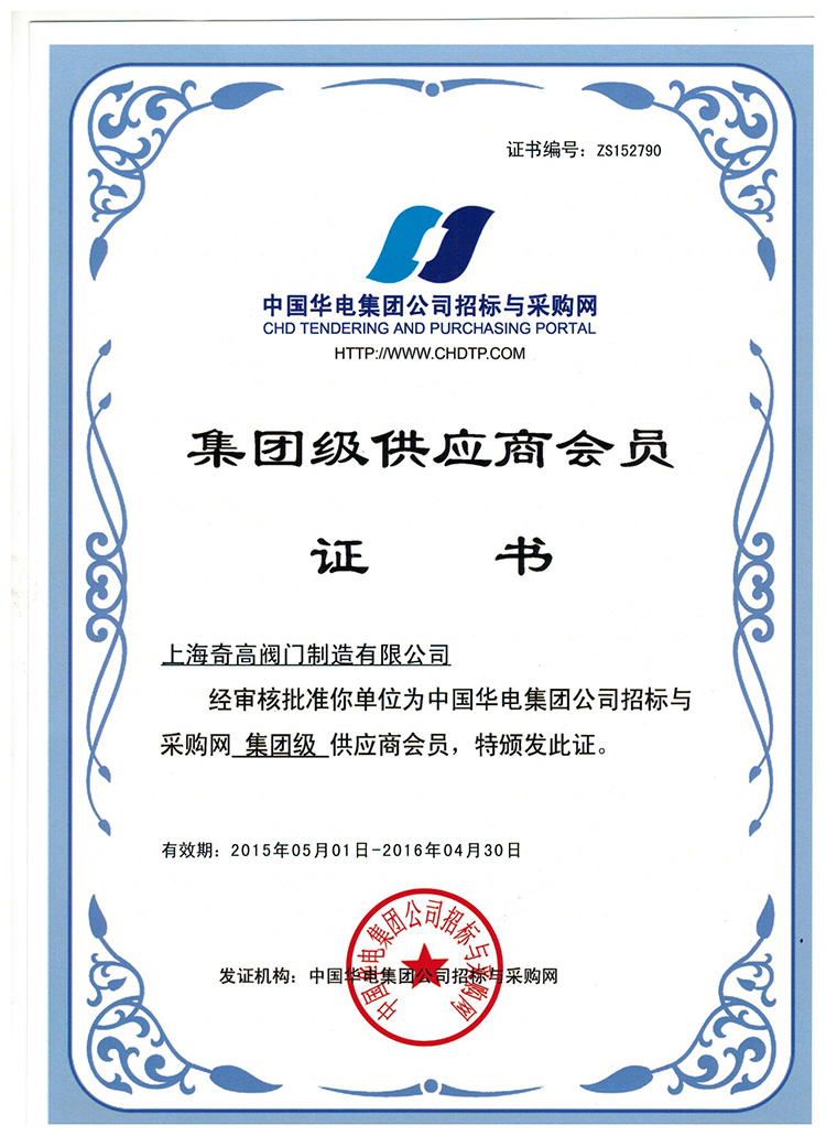 2019-12-18 關(guān)注次數(shù):2015年5月1日,上海奇高閥門制造有限公司(http://www.szmfsbaz.com)經(jīng)過中國華電集團公司招標與采購網(wǎng)的嚴謹?shù)膶徍?,以過硬的資質(zhì)力量獲得了中國華電集團公司招標與采購網(wǎng)的集團級供應(yīng)商會員證書。特此祝賀。經(jīng)過中國華電集團公司招標與采購網(wǎng)的嚴謹?shù)膶徍耍赃^硬的資質(zhì)力量獲得了中國華電集團公司招標與采購網(wǎng)的集團級供應(yīng)商會員證書。特此祝賀。經(jīng)過中國華電集團公司招標與采購網(wǎng)的嚴謹?shù)膶徍?,以過硬的資質(zhì)力量獲得了中國華電集團公司招標與采購網(wǎng)的集團級供應(yīng)商會員證書。特此祝賀。