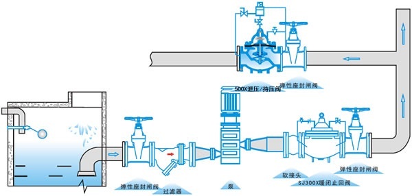 500X泄壓/持壓閥由主閥、泄壓/持壓導(dǎo)閥針閥、球閥、微形過(guò)濾器和壓力表組成水力控制接管系統(tǒng)。利用水力自動(dòng)操作,即可以作泄壓閥用又可作持壓閥用。作泄壓閥用時(shí),可維持供水路壓力在設(shè)定的安全值之下;做持壓閥用,可維持主閥上游水壓在設(shè)定值之上,保持主閥上游供水壓力。