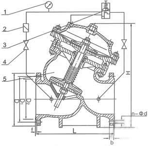 1、壓力表2、過濾器3、控制導(dǎo)閥4、流量調(diào)節(jié)閥5、主閥