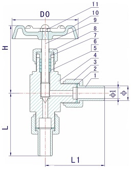 3. 結(jié)構(gòu)特征:錐面密封,活動閥瓣,直角式